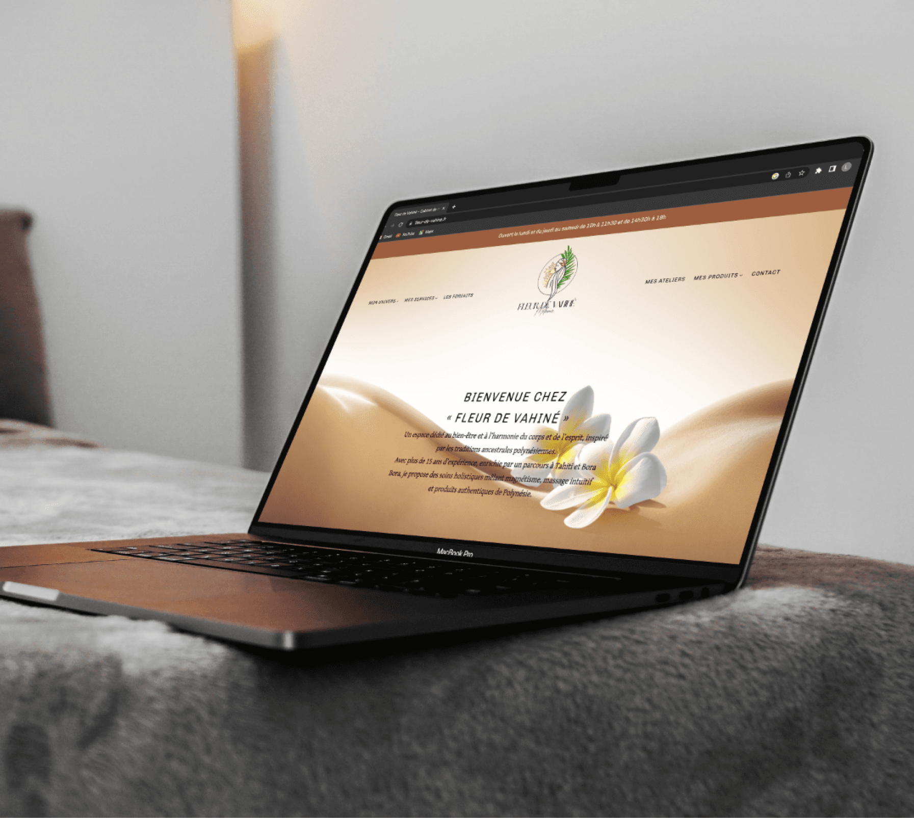 Création de l’identité visuelle et des supports de communication du cabinet Fleurs de Vahiné, avec logo, supports print et site web, afin de transmettre l’univers polynésien chaleureux et séduire une clientèle locale dès le lancement.